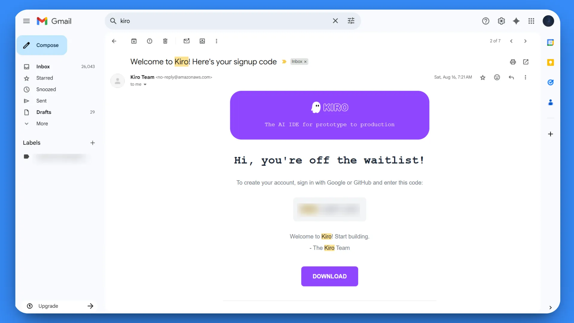- Acesso ao Kiro (é necessário entrar na lista de espera e receber a confirmação)