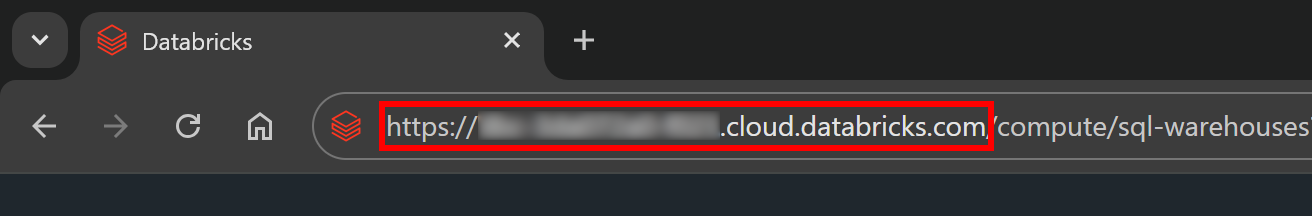 Para se conectar a qualquer recurso de computação do Databricks, você precisa especificar o nome do seu host Databricks. Ele corresponde à URL base associada à sua conta Databricks e tem um formato como: