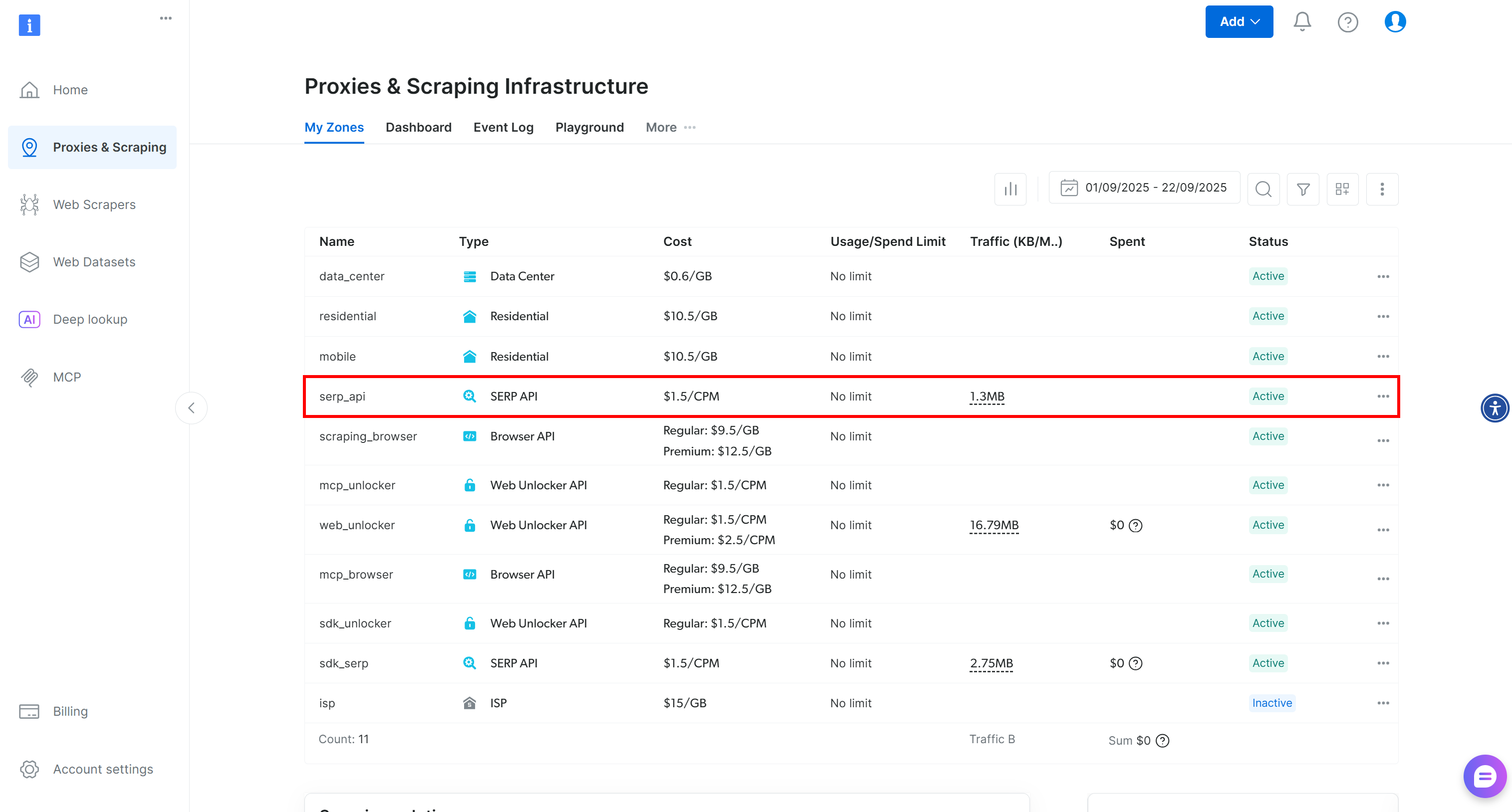 Etapa 1: Configure sua zona da API SERP da Bright Data