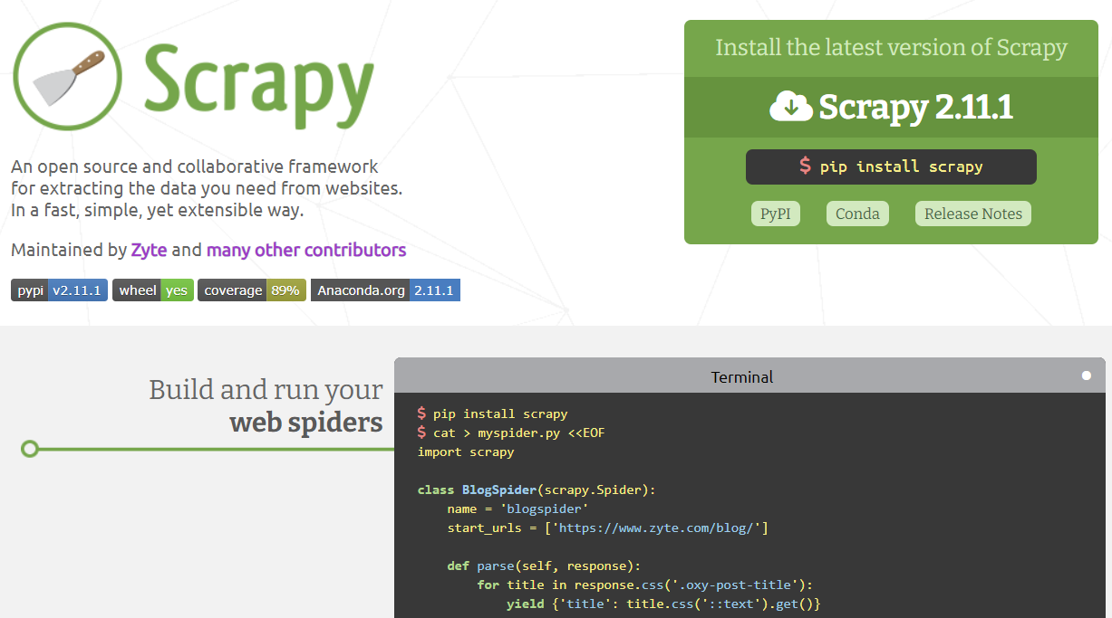 - O Scrapy é uma estrutura Python que requer conhecimento de classes e estrutura de pipeline para Scraping de dados.