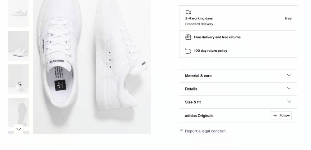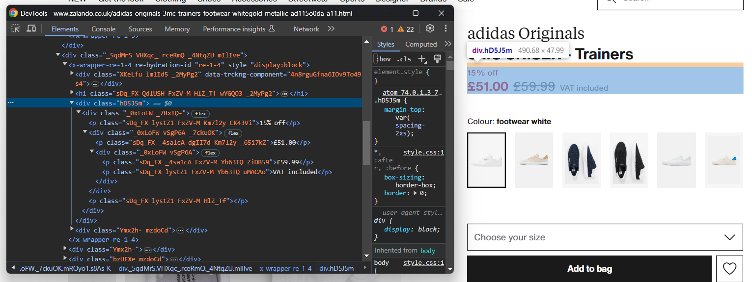 Neste guia, você verá como extrair dados detalhados de um produto de calçados da Zalando UK. Ao direcionar um tipo de produto diferente, você terá que fazer pequenas alterações no script que está prestes a criar. O motivo é que cada produto pode ter estruturas de página específicas com informações diferentes.