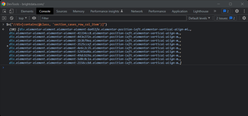 Se você tiver alguma dúvida, teste as instruções do XPath no console do navegador com $x():