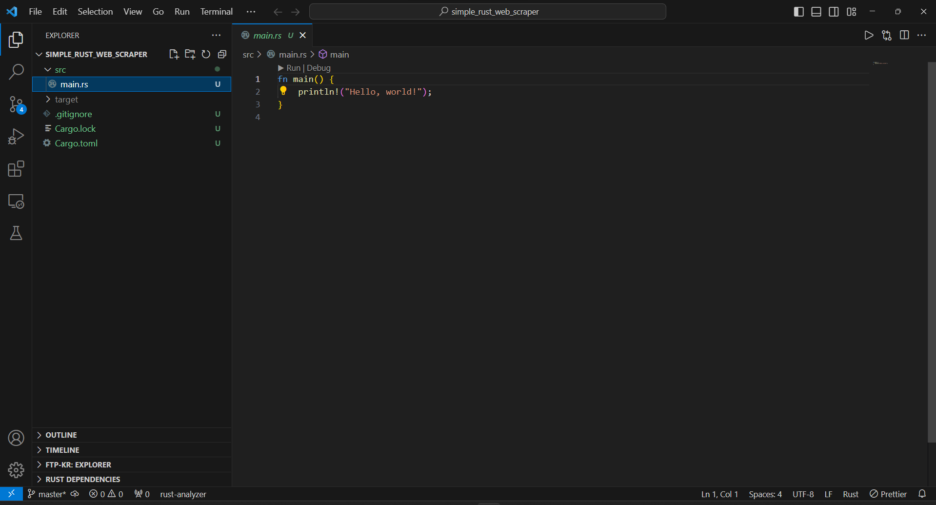 Abra simple_rust_web_scraper no seu IDE Rust. Por exemplo, o Visual Studio Code com a extensão Rust será perfeito:
