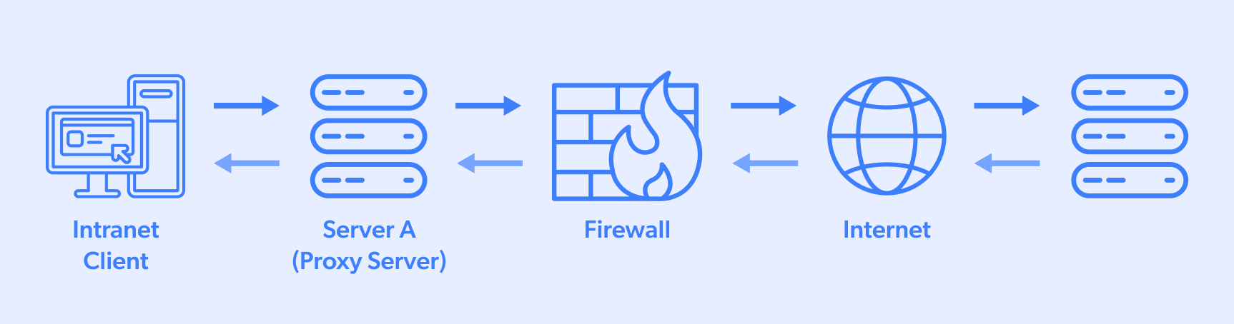 Os proxies “diretos” ou “clássicos” são usados para enviar solicitações de um usuário para um site de destino por meio de um servidor. Os proxies diretos verificam inicialmente se as solicitações são válidas; em um cenário em que não são, o cliente receberá uma notificação de “erro” ou “redirecionamento”. As informações armazenadas em cache serão processadas imediatamente, enquanto as solicitações que não estiverem em cache serão enviadas para servidores de conteúdo por meio de um firewall. As informações serão então enviadas de volta para a primeira pessoa que as solicitou e armazenadas em cache para uso futuro.