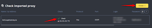 Vá para a guia “Proxy” e clique em “Criar” – você será redirecionado para o menu de criação da lista de proxies.