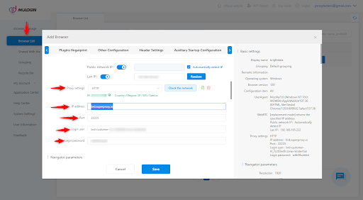 Abrir o cliente MuLogin -> Adicionar navegador -> Configurar Proxy