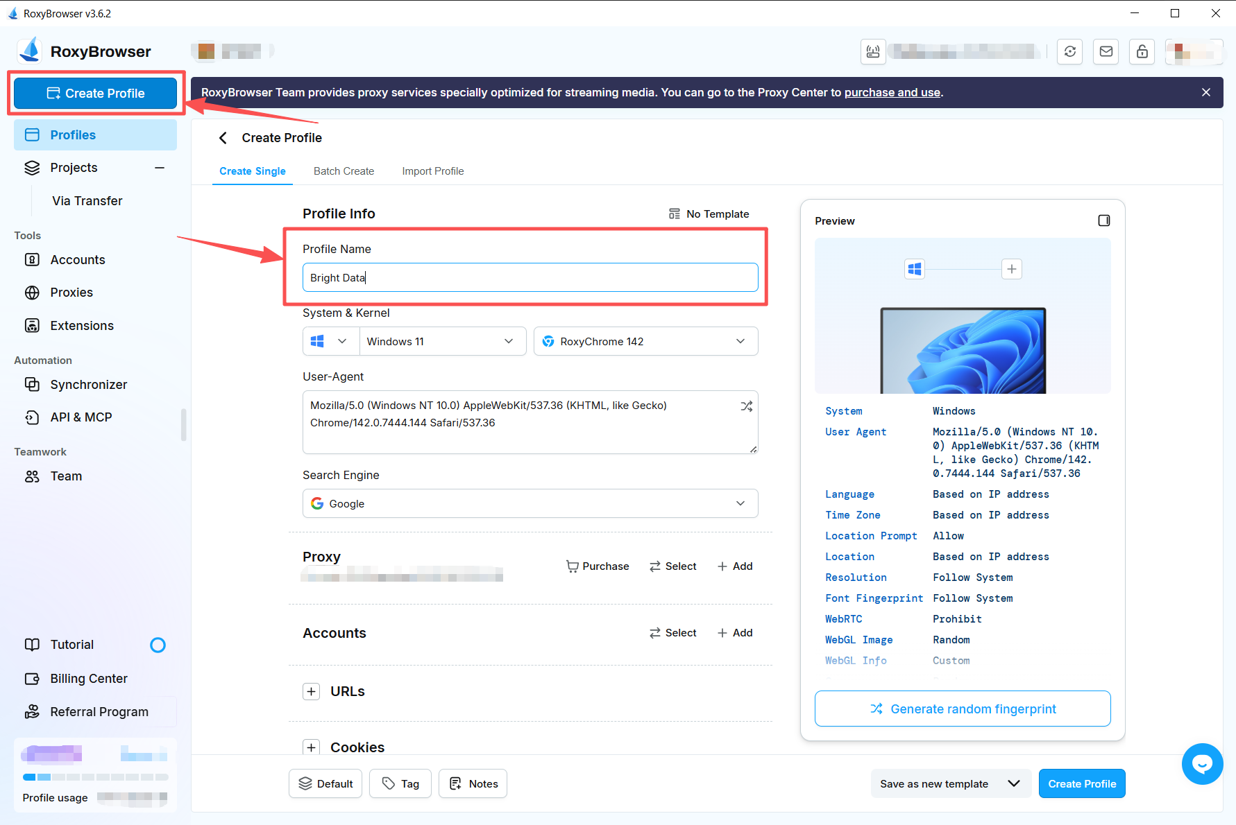 Descubra as possibilidades ilimitadas da integração dos Proxies da Bright Data com o RoxyBrowser. Aproveite mais oportunidades para melhorar sua experiência de navegação.