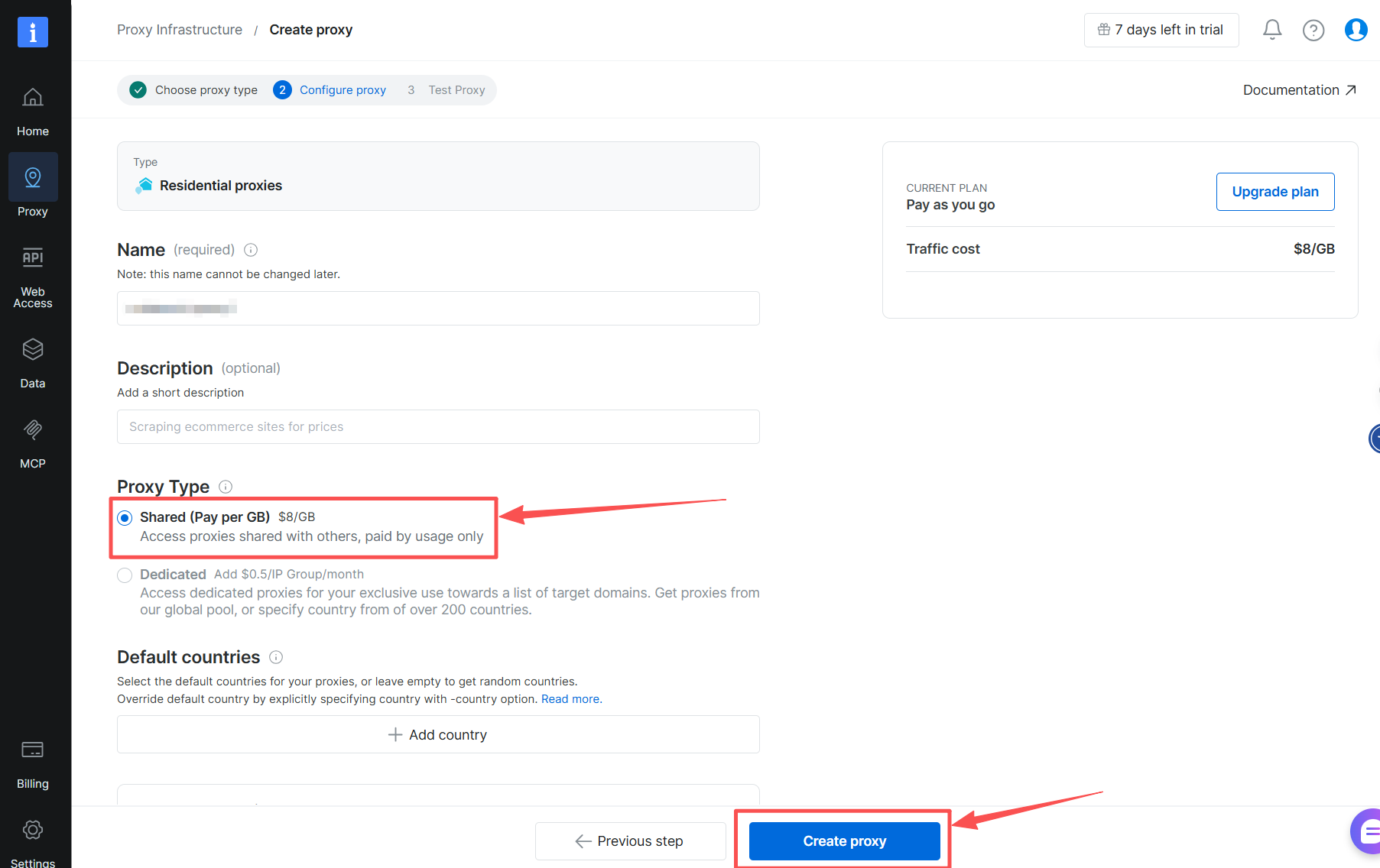 Selecione os proxies Bright Data: