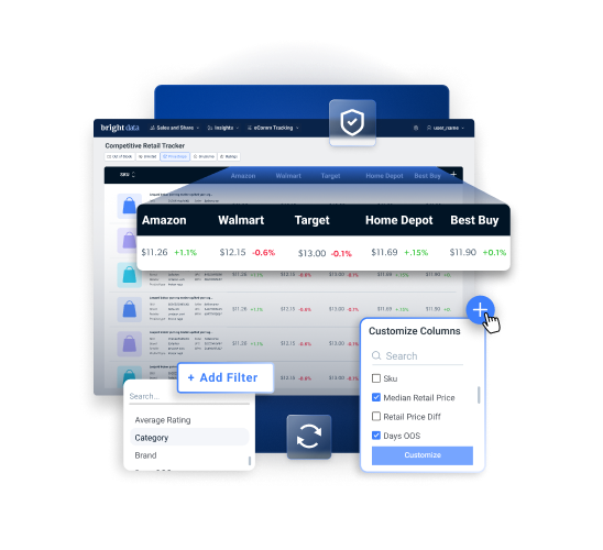 A solução da Bright Insights é construída nativamente sobre a plataforma de dados da Web nº 1 do mundo, a Bright Data. Graças à Infraestrutura de scraping e desbloqueio mais confiável, você obtém escala, cobertura e precisão incomparáveis de quantos sites de comércio eletrônico e varejo forem necessários.