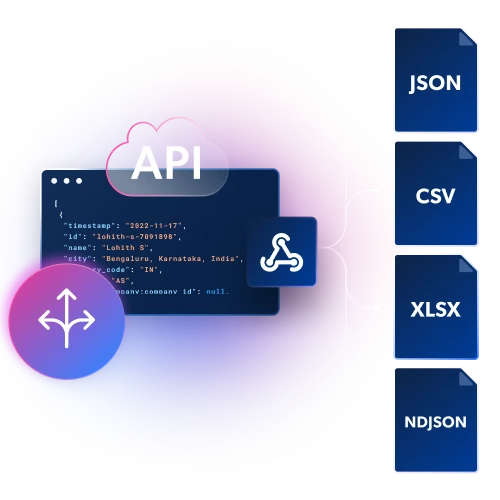 Obtenha dados estruturados em arquivos JSON, NDJSON ou CSV por meio de entrega via Webhook ou API.